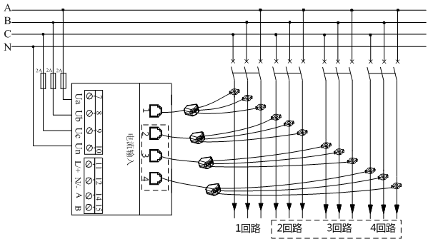 3、可同時監測1至4個回路的用電數據,更適用于配電柜(動力柜)、控制柜內的出線回路計量;