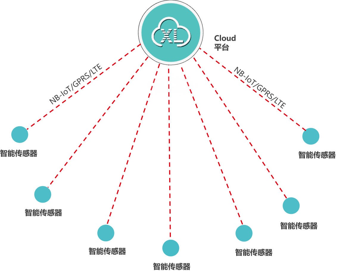 智能傳感器,通過NB/GPRS/LTE,推送數據至云端平臺