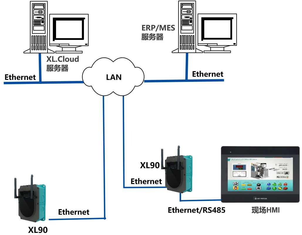 XL90,將數據上傳給企業內部的多個系統軟件平臺;通過LTE(4g)/NB/GPRS將數據上傳至云服務器