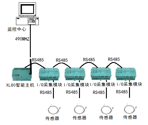 選擇我司XL80智能主機,作為系統的通信中樞。智能主機通過RS485方式采集我司的I/O模塊XLDX及XLAI的數據信息。智能主機對采集的數據進行協議轉換、處理、保存,通過無線的方式,推送數據至中控室監控中心;技術參數說明: