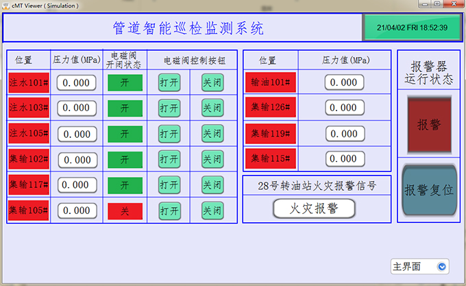 當(dāng)出現(xiàn)壓力過(guò)大時(shí),中控室會(huì)發(fā)出聲光報(bào)警提醒工作人員,工作人員可通過(guò)觸摸屏上的按鈕關(guān)閉或打開(kāi)閥門(mén),防止原油泄漏。大大降低的安全事故,節(jié)省了人工成本。