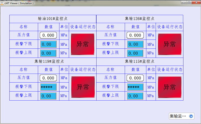 通過(guò)項(xiàng)目的順利完成,可以使客戶(hù)實(shí)時(shí)監(jiān)控各個(gè)油井管道的壓力,使油井管道壓力保持在一個(gè)合適的范圍內(nèi)。人不需要去現(xiàn)場(chǎng)在中控室就能知道現(xiàn)場(chǎng)的管道情況。