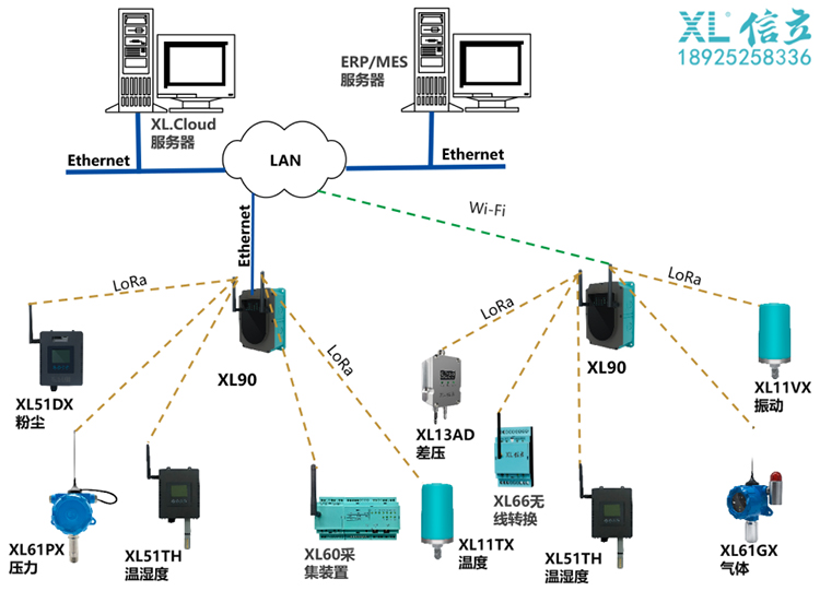 XL95可配置Wi-Fi,接入局域網,推送數據至服務器;