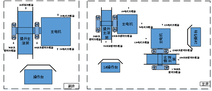 在主、副井提升機電機、減速箱本體上,按相關設備的技術要設置振動監測點;