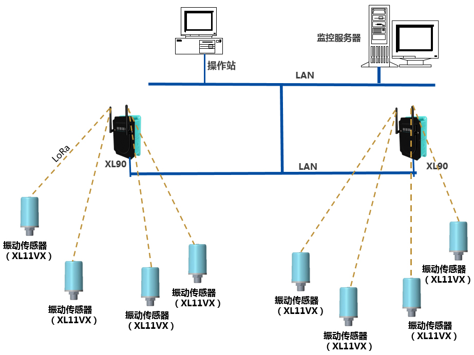 選擇XL90物聯網關,讀取振動傳感器的數據,通過局域網上傳數據至監控服務器;