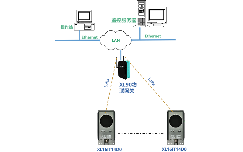 XL90或XL95物聯網關作為無線接收端,進行協議轉換,數據轉發。