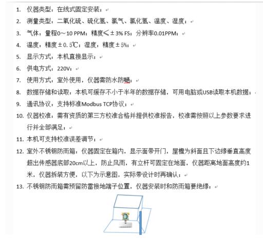 戶外箱體配置:建議選擇1套玻璃鋼百葉箱,安裝XL58環(huán)境監(jiān)測終端及傳感器探頭。建議選擇尺寸足夠的標(biāo)準(zhǔn)產(chǎn)品。