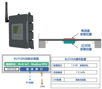l 選擇XL51DA無線傾角傳感器,檢測、判斷井蓋是否出現傾斜、移動。