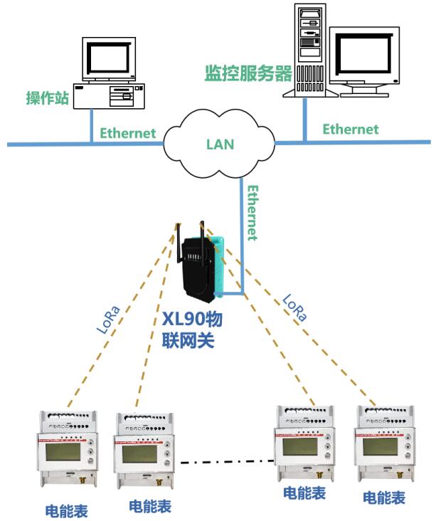 l 選擇DTSD3366XX/XL系列無線電能表,配置LoRa通信,分布在車間、工廠各點的用電數據,無線匯聚到網關,接入監控服務器,降低施工費用,減少了更多的麻煩。