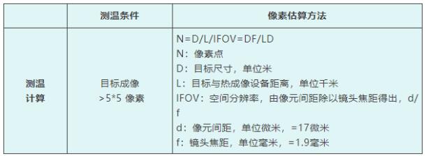 測溫部位的目標成像:>5*5個像素,測溫傳感器即可測溫。 |