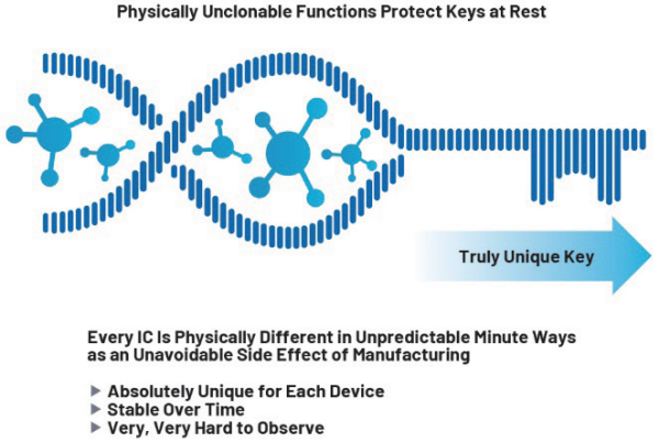 不幸的是,由于直接探測(cè)會(huì)試圖監(jiān)視微電路的內(nèi)部結(jié)構(gòu),因此通用微控制器中常用的存儲(chǔ)器技術(shù)(即 EEPROM或閃存)并不安全。利用掃描電子顯微鏡(SEM),攻擊者無(wú)需很高成本,即可直接監(jiān)視存儲(chǔ)器的內(nèi)容。為了降低此風(fēng)險(xiǎn),半導(dǎo)體行業(yè)開發(fā)了“物理不可克隆功能”(PUF) 技術(shù)。PUF 用來(lái)從微電路的固有物理屬性中導(dǎo)出唯一密鑰。這些因芯片而異的屬性很難直接探測(cè),因此難以通過(guò)直接探測(cè)提取生成的密鑰。在一些情況下,PUF派生密鑰會(huì)對(duì)信任根內(nèi)部存儲(chǔ)器的其余部分進(jìn)行加密,從而保護(hù)設(shè)備上存儲(chǔ)的所有其他密鑰和憑據(jù)。