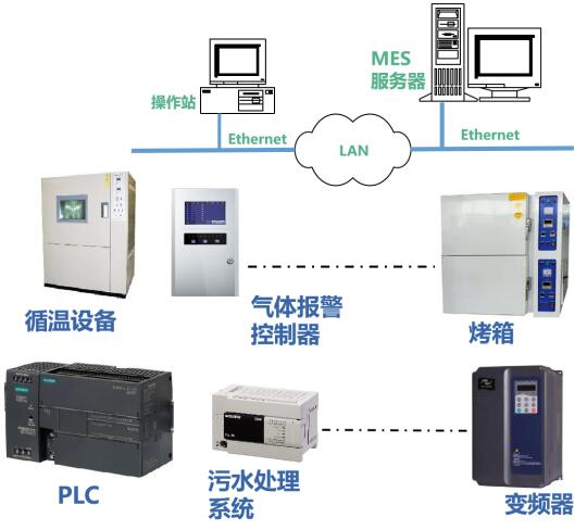 工廠的各種類生產設備、生產系統及監控系統,需要通過廠內LAN接入MES。