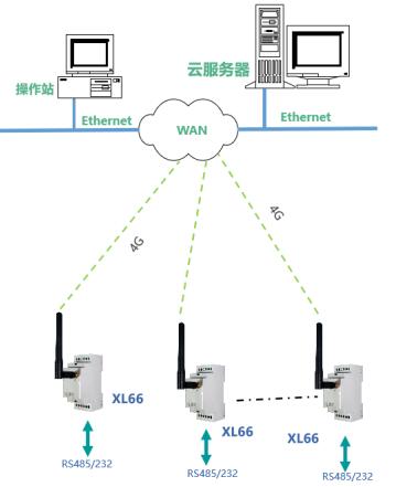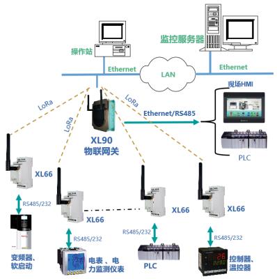 工廠、車間、園區(qū)等場所,有RS485或232通信接口的控制器、二次儀表、變送器等,可通過XL66實現(xiàn)無線聯(lián)網(wǎng)。
