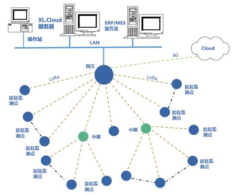 DTSD3366XX/XL無(wú)線多功能電能表獲取數(shù)據(jù),通過(guò)LoRa無(wú)線傳輸方式上傳至XL90網(wǎng)關(guān);XL90網(wǎng)關(guān)計(jì)算分析讀取的能耗數(shù)據(jù),并通過(guò)Ethernet、Wi-Fi、4G等通信方式,將數(shù)據(jù)上傳至XLSCADA平臺(tái)。