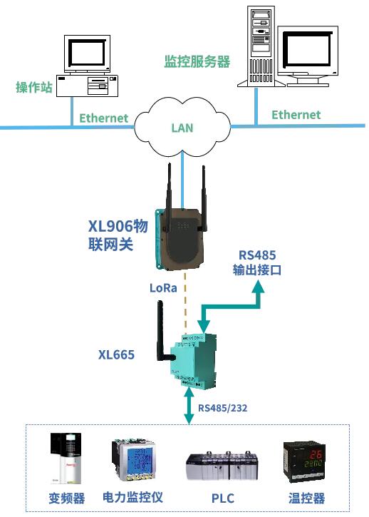 2、經(jīng)由XL665無線轉換器輸出的LoRa信號,可上傳至物聯(lián)網(wǎng)關,接入監(jiān)控軟件平臺;