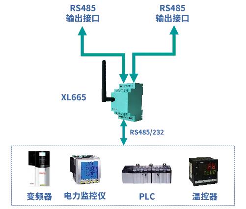 1、經(jīng)由XL665無線轉換器輸出的RS485信號,可接入任何支持RS485及儀表通信協(xié)議的設備;